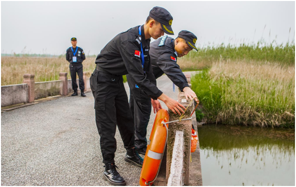 ![]() (安保人员正沿着生态跑路线徒步全程巡查)